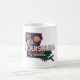 Ett klassiskt kaffe mugg som har stil Louisiana-statsilhuett i Mardi Gras färg