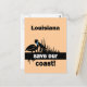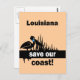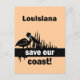 Louisiana. Spara kusten! Kustfågelns kust i Louisiana hotas av oljekatastrofen Bukt i Mexiko. Pelikan med tårar från öga som skildrar sorgen hos de djurarter som bor i Bukt kusten. De långsiktiga effekterna av den olja som invaderar Louisianas marshlands har ännu inte fastställts.