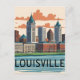 Ge Louisville, Kentucky, så mycket energi som möjligt till dig med den här fantastiska återresan. Den här illustrationen visar stadens ikoniska skylin under en dramatisk solnedgång i himmel, detaljarkitektur, en scenbro och reflektioner på Ohio-floden. Designat i en vintage vycard stil med varma toner och klassiskt tecken är det perfekten att lägga till charm i alla hem-, kontor- eller galleriväggar. En idealisk gåva till Louisville-anhängare, besökare eller älskare av amerikansk cityscape-konst.