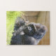 En stor svart Gorilla-loungar i solsken nära ett stativ av högt gräs av grönt. Det kortare gräset ger perfekten förgrund, vilket leder till hans tänkvärda inställning. Han tittar över i din riktning och du vad han tänker. Om du kärlek gorillas då, beställ din i dag!