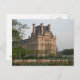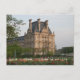 Det här är en del av Louvre Museum i Paris, Frankrike. Fotot togs i vår och tulpaner syns i förgrunden. Det är ett vackert skådespel av byggnadens fasad.