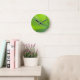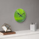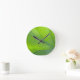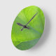 Ett naturtemat väggklocka med en stängningsbild av löv.