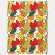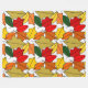 Den här stora filten har en utformning av löv som upprepar sig för att skapa en hög av löv i skuggor av gult, rött, orange och grönt.