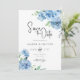 bröllop spara datum-kort för blommigtens vattenfärg. blommigten elegant sparar datumkortet som innehåller vackra handmålade vattenfärgblommor och grön i ljus baby blue med kalligrafi av eleganten. Modern blommigt bröllop spara datum-kort. Du kan anpassa ordalydelsen, teckensnittet stil, färg och storlekt framför och bakom kortet. Kontakta mig gärna om du vill ha matchande artiklar.