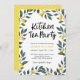 Invitera dina gäster till din sommarköktea som är parrty med denna citronträdinbjudan med vattenfärgcitronfoilage och en mönstrad bakgrund. Perfekt för de varma sommardagar. Också tillgängligt med "en möhippa" överskrift.