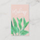En elegant modern stilfull visitkort för makeupkonstnär med elegant skrivar räcker bokstäverstiltypografi i vit på vattenfärggrönt räcker den målade tropiska lövfågeln av paradiset på rodna rosa bakgrund. Om du behöver någon customization, tveka inte, i att kontakta mig