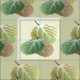 I höstens lämna har mönster ett kluster med tre Aspen-löv i olika skeden av fall färg över bakgrunden av pastellgrönt.