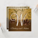Höstbladsguld & Chokladbruna höstbröllopsinbjudningar (matchar RSVP-korten och mer som finns längst ner på denna sida) - varje inbjudan har en elegant brun blomsterdesign högst upp på en gyllene bakgrund. Den nedre delen är skuggad i en livlig chokladbrun färg med en bronsliknande kant som skiljer sig från den gyllene övre delen. Längs kanterna finns två tryckta metalliska lönnlöv i bruna, brons- och gyllene färger. Framsidan har en stor monogram som du kan anpassa till brudgummens initialer. Se till att du ändrar båda demobokstäverna till samma initial så att de matchar. Det finns två dubblettboxar för att ge monogrammet ett 3D-utseende. Baksidan har samma g