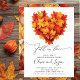 Den här inbjudan till repetitionsmiddag har ett vackert hjärta på hösten löv, skapar perfekten för ett falltemat party. Inbjudan är enkel och elegant, med vit bakgrund och svart text. Hjärtat från hösten i löv tillför stollig och roligt, och den övergripande utformningen är perfekten för att fira parets kommande bröllop.