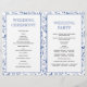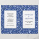 Löv mönster i indigo blue folded bröllopsprogram. Den här vackra moderna designen visningar mönster i löv i vitt på indigoblått och texten i vitt ramar med skalat gräns. Observera att du måste vika det manuellt.