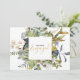 Meddela en förlovning i stil med en botanisk inbjudan från en lush-krans av löv, petaler och en höstsgrej kring ett modernt penselskript. Layouten balanserar en fetstilad "Förlovningsfest"-rubrik med linjer för datum, tid, plats och OSA, så att detaljerna är lätta att läsa snabbt. En mångsidig palett med grönt och ekologiska blommigtar kostym trädgårdsarrangemang, utomhusjordingar eller mysigt inomhus firande över vår genom fall. Anpassa namn, formuleringar och färg för att samordna med evenemangstemat.
