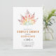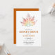 Färgfull löv-utskrift bränd orange faller bröllopsinbjudan till par dusch. Den här vackra designen visar en höst i löv och din text. Baksidan är av fast bränd orange färg. Färg: brun, röd, orange och grönt.