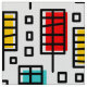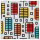En färglös originalreflemodern stil-design som består av rektangulära löv-liknande motiv med motstående färg-rektanglar.