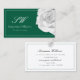 Lovande Vit ros om Grönt med Initialer Simple Visitkort