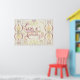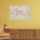 Väggkonst med en fantasifull tolkning av vårt tema Love Anyway i rosa och röda nyanser med djärva utsmyckningar, ränder och blommor. TEXT: "Love Anyway"