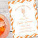 Cheers to love and bubbly! This Aperol Spritz-themed bridal shower invite brings a splash of Italian charm with a hand-drawn spritz illustration, bold orange stripes, and a chic wavy border. Perfect for the bride who loves summer cocktails, rooftop vibes, and Euro-inspired celebrations. Customize every detail—from the bride’s name to the RSVP.