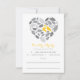 En snygg och enkel OSA design! Svarskort adorberas i en utformning av löv i nyanser av lätt grått och kol grått. Två små love birds visas i en gult med solsken. Baksidan innehåller utrymme för ytterligare text, eller en bröllop webbplats adress. Samordnar med "Love Bird Löv and Heart Wedding bjudation".
