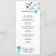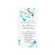 Det här bröllopsprogrammet har två fåglar med blå accenter och en träd gren med motsvarande blå löv.