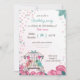 romantisk rosa och blått love birds i bur med blommigtens bakgrund födelsedagsfest inbjudan