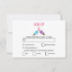 Den här utformningen har ett par vackra love birds. En söt och enkel illustration av fåglar i kärlek med röda hjärtan som flyter i luft. Kärlek och passion ligger i luft med denna utformning. Baksidan visar det romantiska love birds och flyter hjärtan. En romantisk, enkel design med elegant-typografi. Den här utformningen passar perfekt för alla bröllop-teman. Bröllopets OSA kontokortsdesign för hela säsongen.Matchande bröllopsinbjudningar och andra kontorsartiklar finns också tillgängliga.
