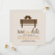 Anpassningsbar spara datum meddelande har en bra illustration av två fåglar som finns på en parkbänk. Perfekt för fall, vinter, sommar eller vår bröllop. Besök vår affär för att hitta matchande produkter och mer möhippa, t.ex. bröllopsinbjudningar, tackkort, adressetiketter, bachelorette och möhippa inbjudningskort med mera!