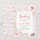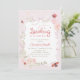 En mjuk och elegant baby shower inbjudan med rosa blommor, delikat grönska, charmiga nyckelpigor och en graciös slinga. Den milda pastellfärgspaletten och romantiska trädgårdsstilen gör denna design perfekt för en baby shower för flicka. Matchande artiklar tillgängliga.
