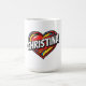 This comic-style graphic mug features the name "Christina" over a beautifully designed energetic heart design. This is a great gift for your friend, girlfriend, wife, and sister.