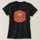 Fun wine Holiday T-shirt. Large glass of sparkling wine in front of glowing wreath with the fun words,