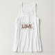 Dussintals vackra, färgglada abstrakta fladdrande fjärilar förenas för att bilda ordet KÄRLEK. Det uppiggande konstverket är en hyllning till kärlek, hopp och glädje i alla dess former — mild, livfull och alltid framåtriktad. Den här inspirerande tanktoppen med scoop-hals kommer att ge positiv energi till vilken outfit som helst.