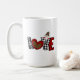 Celebrate love with flair! This festive mug spells out “LOVE” using buffalo plaid, leopard print, and a cozy gnome perched on the “V.” A whimsical mix of textures perfect for Valentine’s Day or cozy winter gifting.