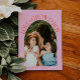 Modern and elegant Valentine's Day photo template card featuring an arch framed photo with a text around it that says "Love Grows Here" with hearts. You can add another picture and a message on the back of the card. Orange pink.