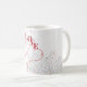 A cheerful and romantic white ceramic mug featuring a bold and playful 'LOVE' design with two floating red heart balloons and colorful confetti scattered around. The enlarged design makes this mug vibrant, eye-catching, and full of love.