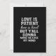 Love Is Patient Love Is Kind Funny Quote Playful S Julkort