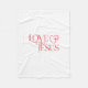 Whit, comfy blanket with Love Like Jesus and a cross inside a heart.