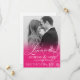 Denna roliga Spara datum-kort har en fuschia-färgton med vacker "Love Is In The Air"-typsnitt. Lätt att anpassa ~ använd bara knappen ANPASSA för att lägga till din text och ditt favoritfoto! Finns i 13 färger. För frågor eller anpassade förfrågningar, maila: cheryl@cheryldanielsart.com. "Love Mist" originaldesign av Cheryl Daniels © 2014.