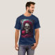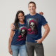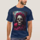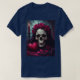 A striking skull sits serenely beneath a velvet hood, its hollow eyes catching the warm, trembling glow of a single candle. A crown of deep red roses crowns the bone. Beside it, a heart-shaped box rests among scattered rose petals, a harmony of romance and ruin.