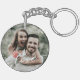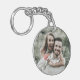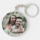 A minimal and simple design featuring the word "love" written across the center of the keychain in a delicate, flowing script. The script has elegant swashes that extend horizontally to the edges conveying a sense of uplifting joy. Personalize with your favorite photo.