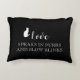 This adorable cat mom pillow features the words, "Love speaks in purrs and slow blinks" in white on a black background. A white silhouette of a cat appears right before the word love. This is an adorable pillow for the cat mom in your life or for yourself. Copyright peachesthetuxedocat