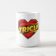 This comic-style graphic mug features the name "Tricia" over a beautifully designed energetic heart design. This is a great gift for your friend, girlfriend, wife, and sister.
