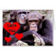 Två schimpanser med röda hjärtan som har uttrycket Love you i mitten.