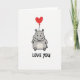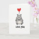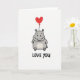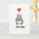 Love You Hippo Heart Balloon Card Kort