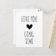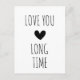 Enkel minimalistisk typografi vykort, med orden 'älskar dig länge' i en svart text på en vit bakgrund, och ett litet svart hjärta i mitten. Söt hälsning till någon du älskar.