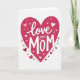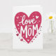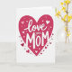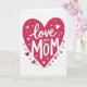 This greeting card shows a large deep magenta heart centered on a white background, with small hearts scattered on and around it in pink, white, and dark red. The main words read “Love you MOM,” placed right in the middle of the big heart. “Love you” is written in a smooth, cursive-style white lettering, while “MOM” is in white capital letters that look thicker and stronger. A soft shadow under the letters and some of the tiny hearts makes them look slightly raised, like gentle layers. The overall look feels warm and caring, like a simple way to say thank you and “I’m thinking of you.” It works well for a mom, but it can also fit anyone who has been there for you with steady love and support 🥰. The little hearts around the main one add an extra touch of affection without crowding the message ❤️, and it’s a sweet way to share Valentine’s Day feelings with someone you love.
