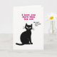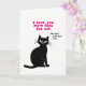 This card shows a simple black cat sitting in the center on a plain white background. The cat is drawn as a solid black shape with white whiskers, narrow white eyes with black pupils, and a small smirking mouth that makes it look a bit smug. Above the cat, the main message says “I Love you more THAN THE CAT” in bright magenta block letters, and it’s the first thing you notice. Near the right side of the cat’s head, there’s a smaller note that reads “But don’t push your luck” in a thin, hand-drawn black style. The contrast between the big sweet line and the small warning makes the joke land, especially for anyone who loves their pet a lot. With just the cat, the white space, and the two lines of text, the card feels focused and easy to read. It’s a funny, affectionate way to say “I love you” with a little extra personality ❤️💌🍫, and it’s great for sharing Valentine’s Day sentiments.