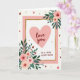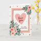 This card features a large soft pink heart centered inside a neat rectangular border, setting a gentle, affectionate tone ❤️. Inside the heart, the words “love you” sit in flowing lettering in a warm, darker pink that feels like a tender note left just for her. The border is a light pink band with a thin, slightly textured golden line just inside it, adding a cozy, keepsake touch. In the upper right and lower left corners, flower clusters lean into the frame as if reaching toward the heart, hinting at closeness and care. The blossoms blend blush, peach, and coral shades with deep green and teal leaves, with a few petals and stems spilling slightly beyond the edge 🌼. Along the lower right area, “TO A VERY DEAR NANA” appears in small uppercase letters in a darker pink, neatly aligned near the corner. The cream background is dotted with tiny gold circles and little red hearts scattered lightly across the space.