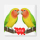 Originalmålning av en lutinomix-lovebird av designern/illustratorn Carolyn McFann på kvalitetspost, kort och presenter för papegoja älskare.