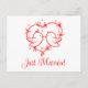 Lovebirds Boho Red Love Heart Just Married Wedding Meddelande Vykort