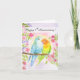 This hand-painted watercolor and pen illustration features lovebirds perched on a branch, surrounded by soft pink and purple flowers against a romantic pink sunset. Designed as a 5th wedding anniversary card, this artwork captures love, togetherness, and lasting commitment.