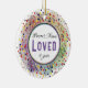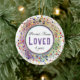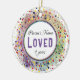 Personlig Photo Ceramic prydent med personens namn, ålder eller år och ord "Loved", flera djupa, vattenfärgsliknande nyanser med en spray med små färgader. HAMbyWhiteGlove aka HAMbyWG