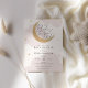 Baby Shower-inbjudan med rosa moln och stjärnor med guld glittery måne och roligt skript "Du är älskad i måne och tillbaka!" Anpassa med informationen eller klicka på "klicka för att anpassa ytterligare" för att justera teckensnittstypen, storlek, färg.
